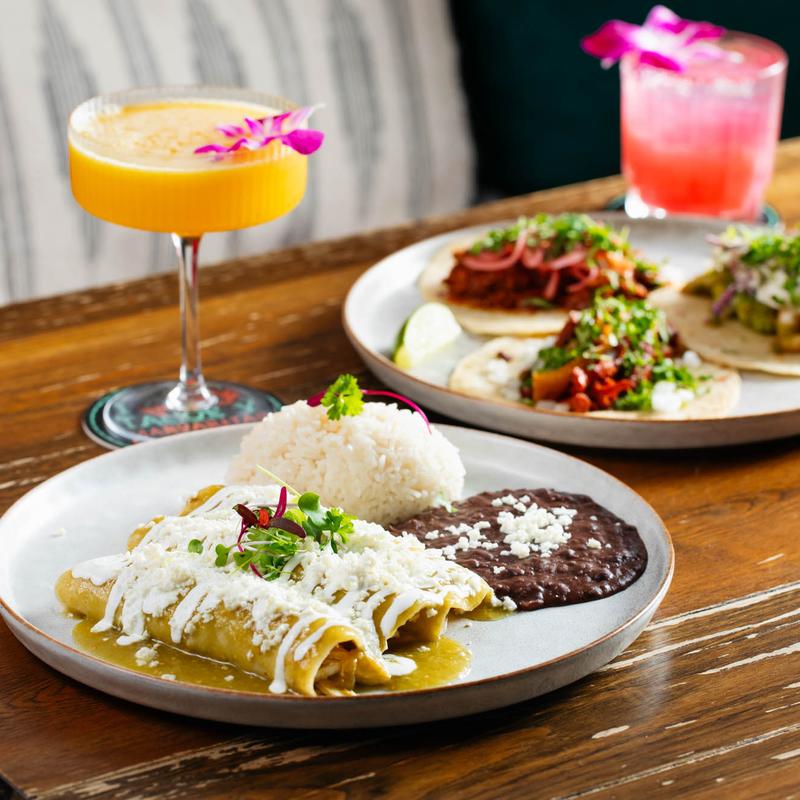 Choice of meat, refried beans, pico de gallo, romaine lettuce, queso fresco, and avocado | Add Beef +$1.50