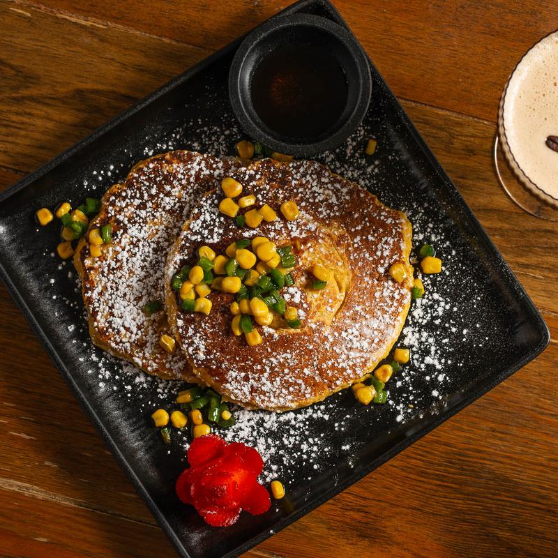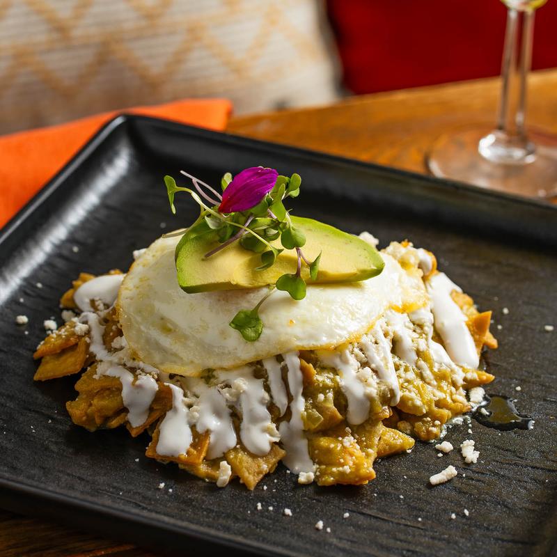 Fried corn tortilla with homemade tomatillo sauce topped with queso fresco, sour cream, avocado, and two eggs • Add Chicken or Pork +$4.50