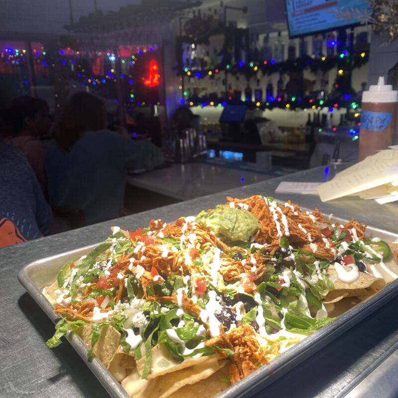 White queso, tinga, pico de gallo, sour cream, and pickled jalapenos.