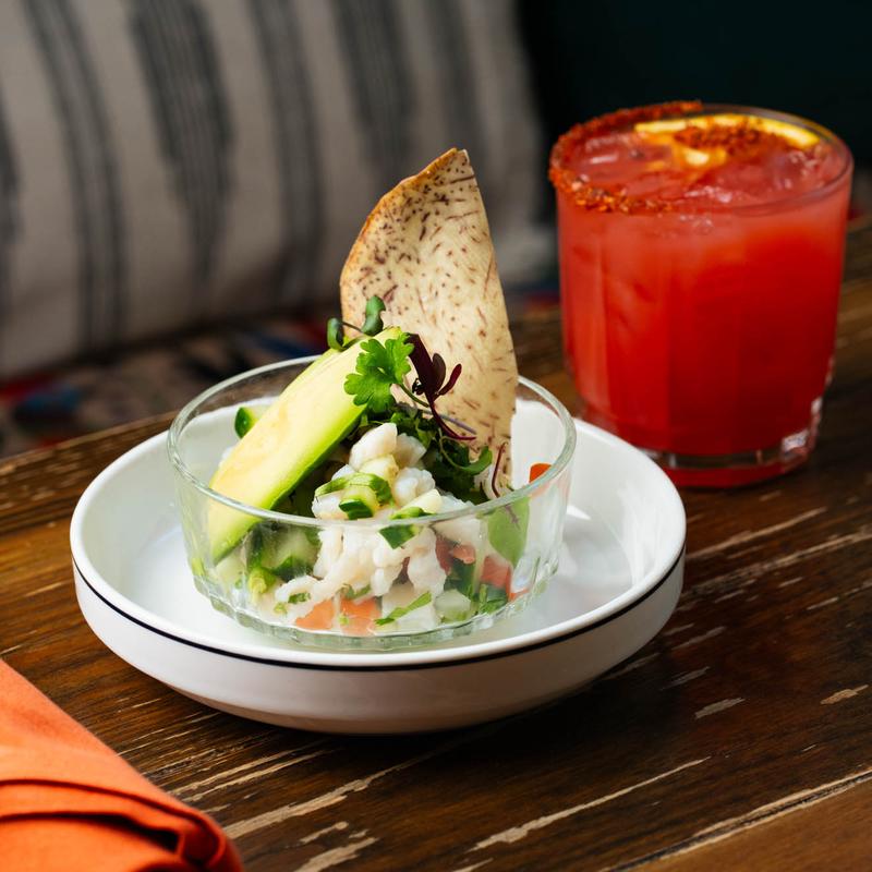 Mahi Mahi fish marinated with lime, pico de gallo, and cucumber.
